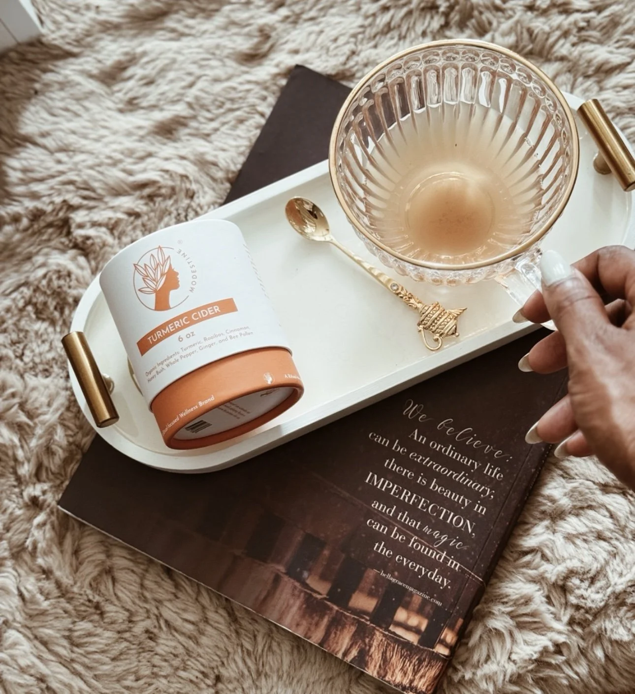 Turmeric Cider: Spiced and golden a soothing balance of turmeric, apple, and ginger that wraps you in warmth.